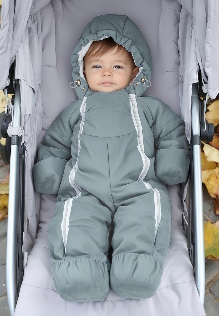 - Используйте комбинезон как самостоятельную одежду, так и в комплекте с меховым конвертом зимой