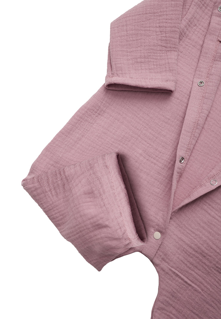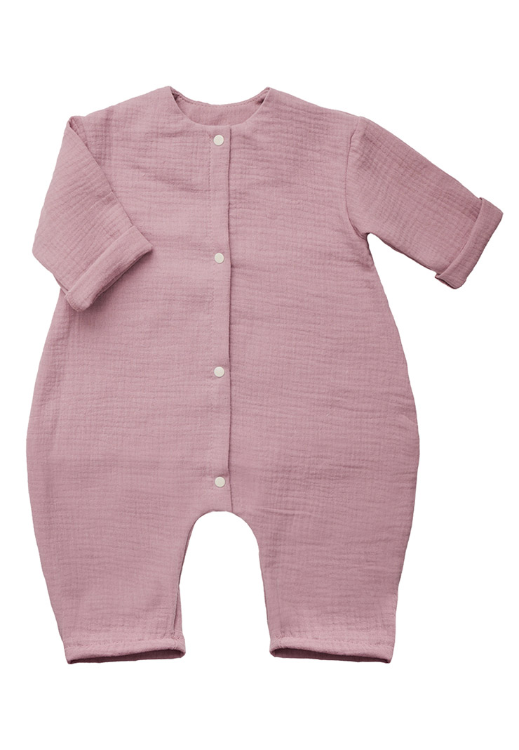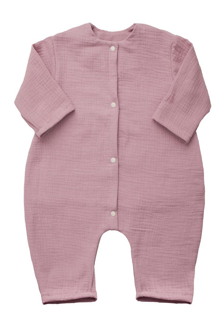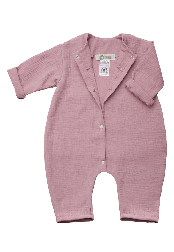 - Комбинезон создан из воздушного муслина (100% хлопок) – это мягкий и нежный материал, который хорошо пропускает воздух, позволяя коже ребенка дышать.