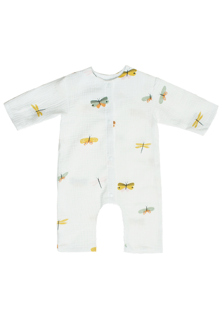 - Комбинезон создан из воздушного муслина (100% хлопок) – это мягкий и нежный материал, который хорошо пропускает воздух, позволяя коже ребенка дышать.