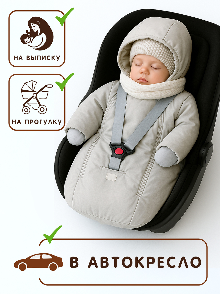Конверт-комбинезон на выписку «Уно» идеально подойдет для первых дней жизни новорожденного и дальнейших прогулок весной